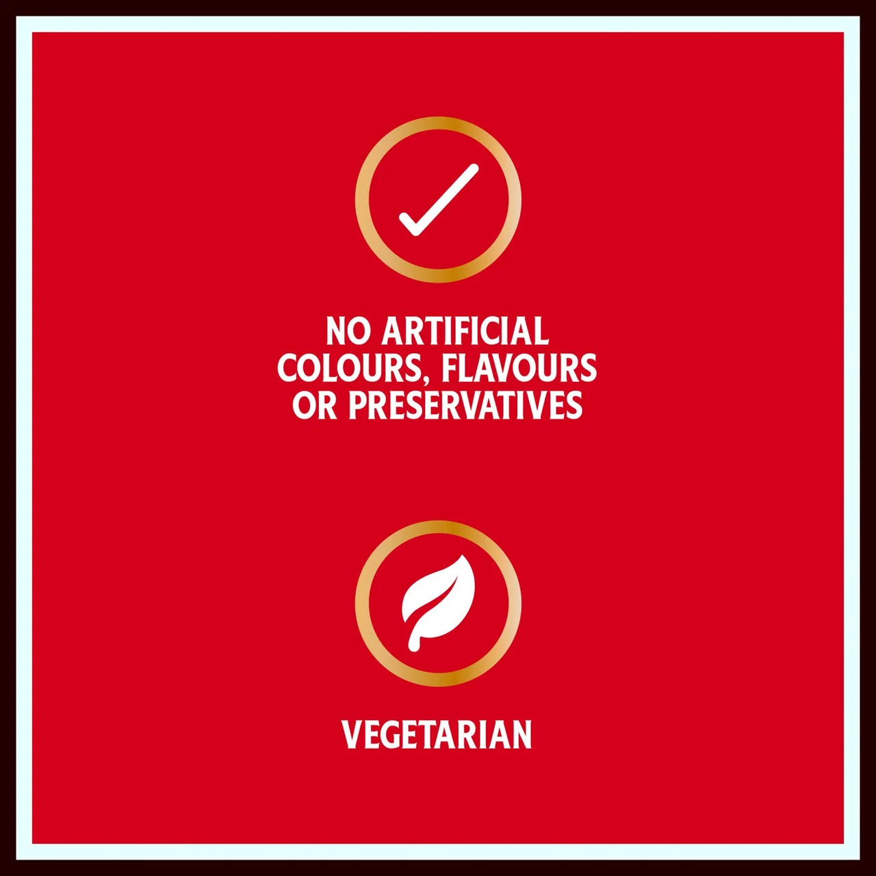 Our recipe is low in fat, contains no artificial colours, flavours or preservatives and 1/2 a can makes up 1 of your 5 a day when eaten as part of a balanced diet. Suitable for vegetarians.